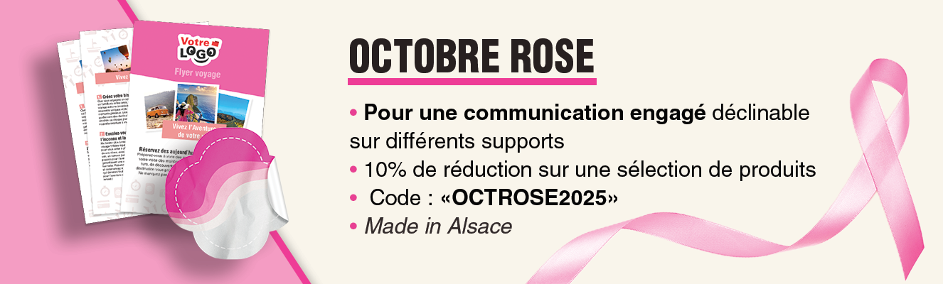 Ensemble pour Octobre Rose 🌸 – Profitez de 10 % de remise sur nos flyers, dépliants et stickers avec le code OCTROSE2025 pour créer des supports originaux et percutants, qui donnent de la visibilité à vos projets, renforcent votre communication et marquent les esprits de vos clients.